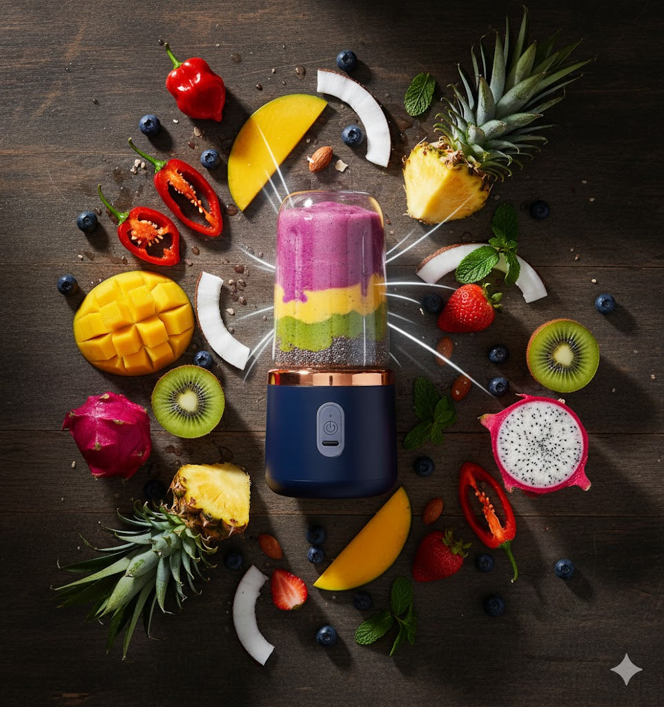 Perfect for travel and gym days. Blends frozen fruits surprisingly well for a small portable machine.